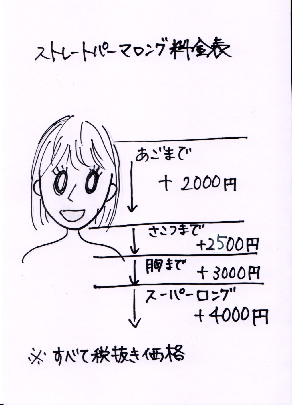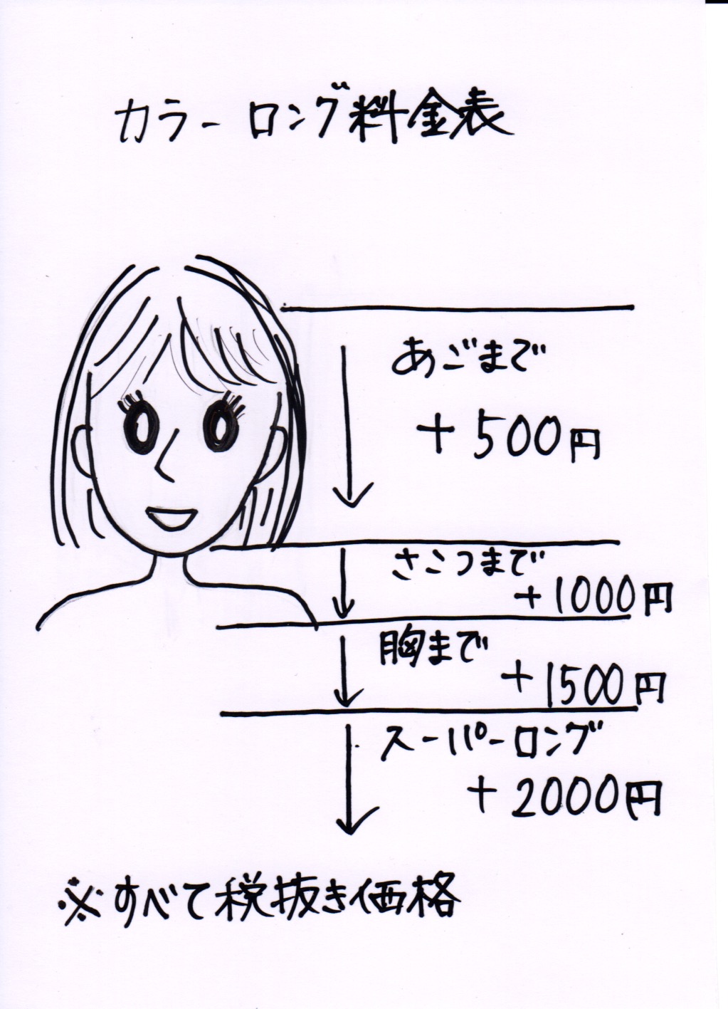 カラー、縮毛矯正のロング料金改定